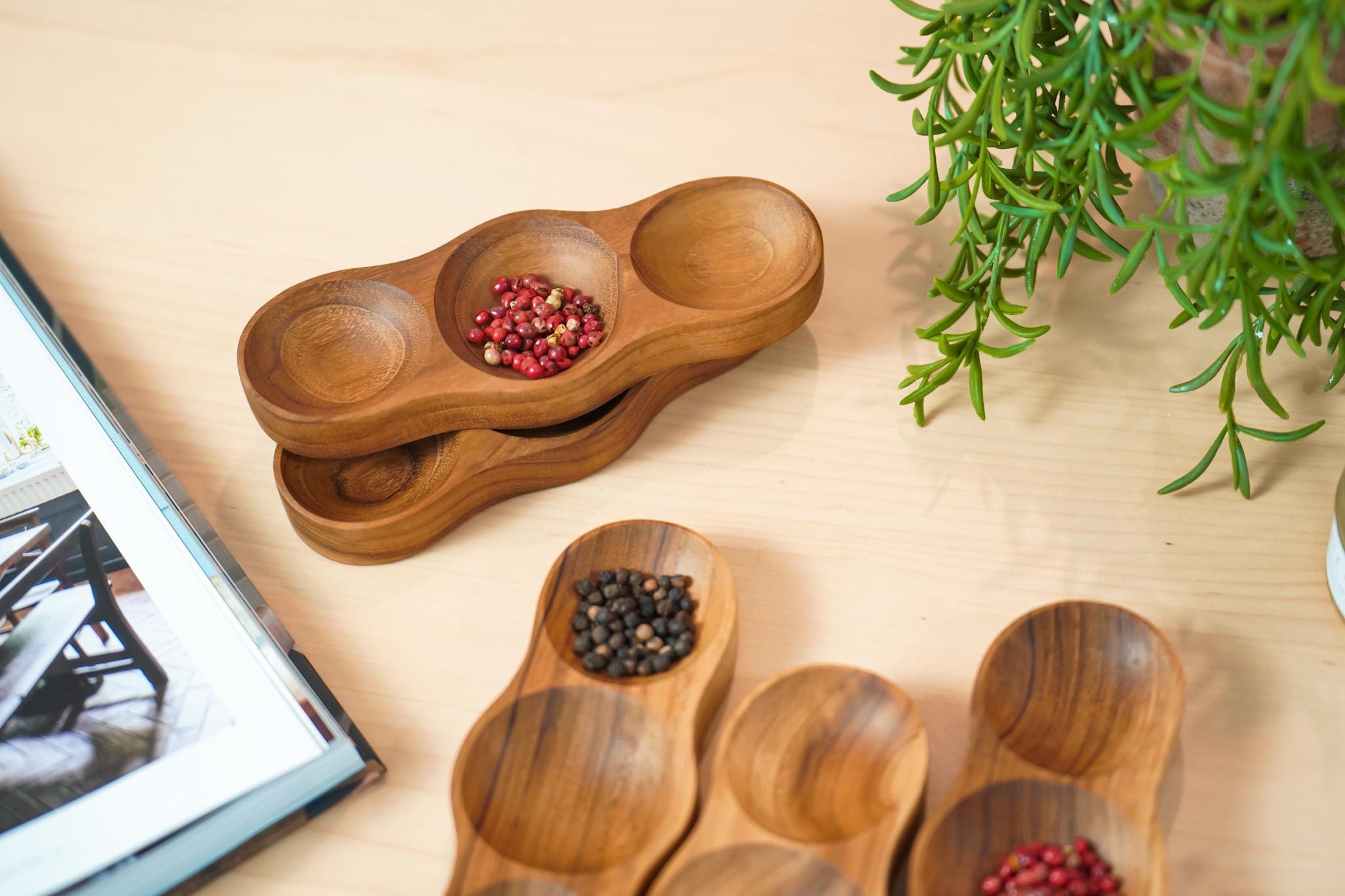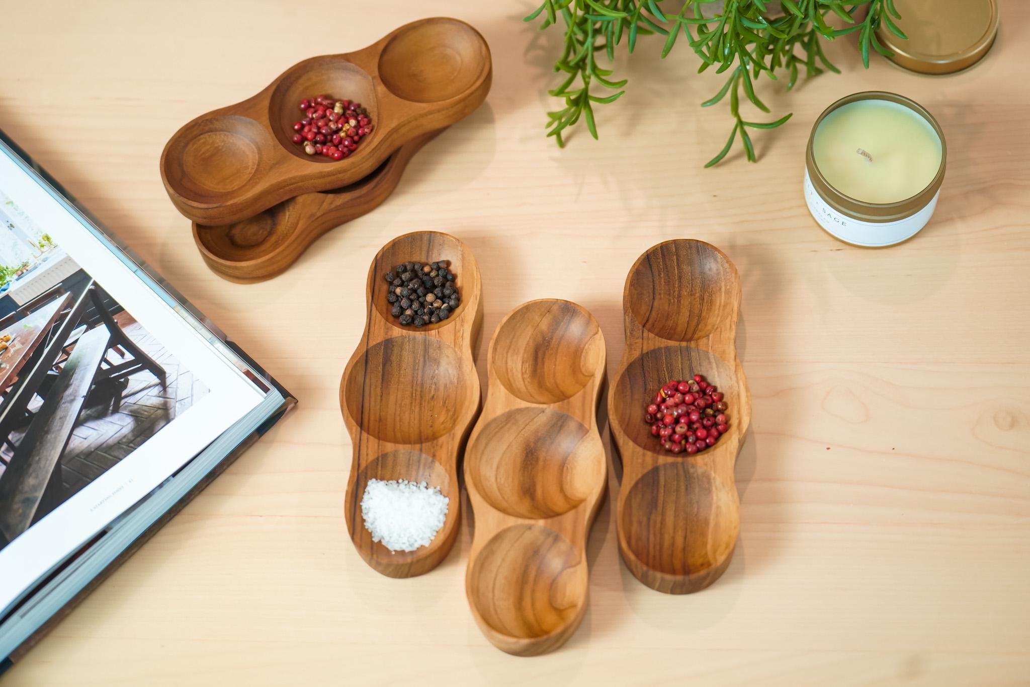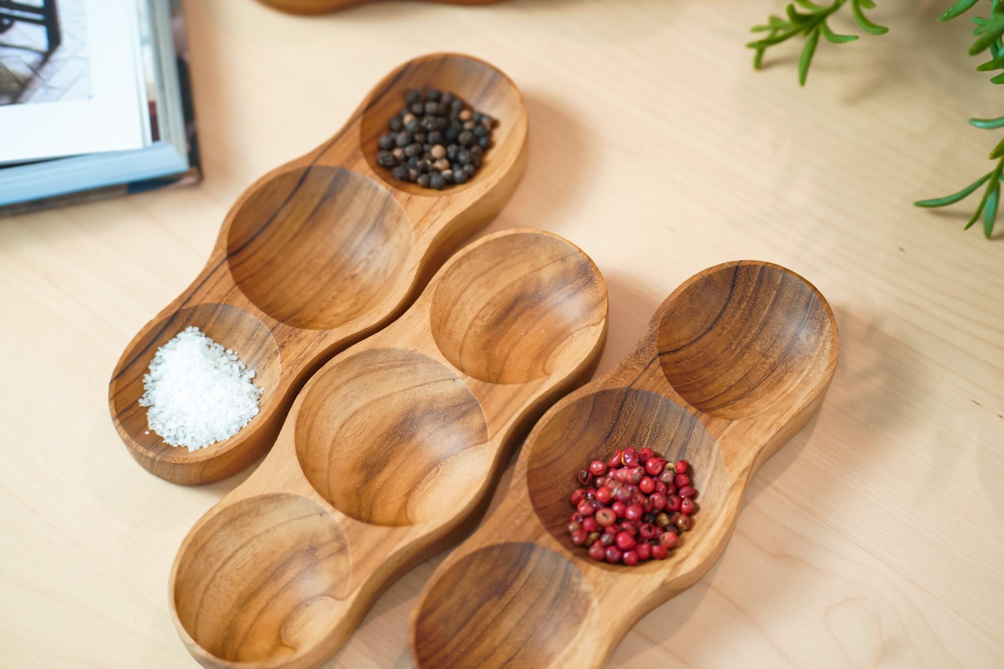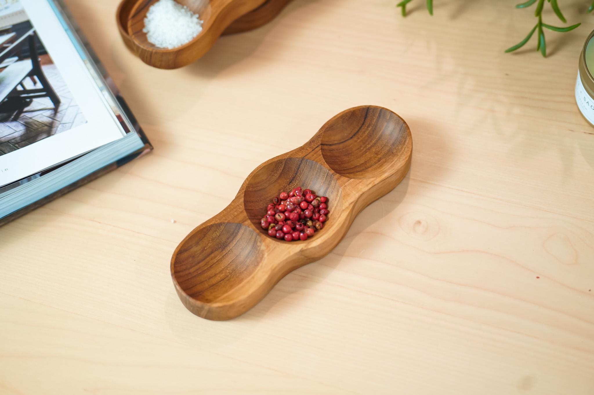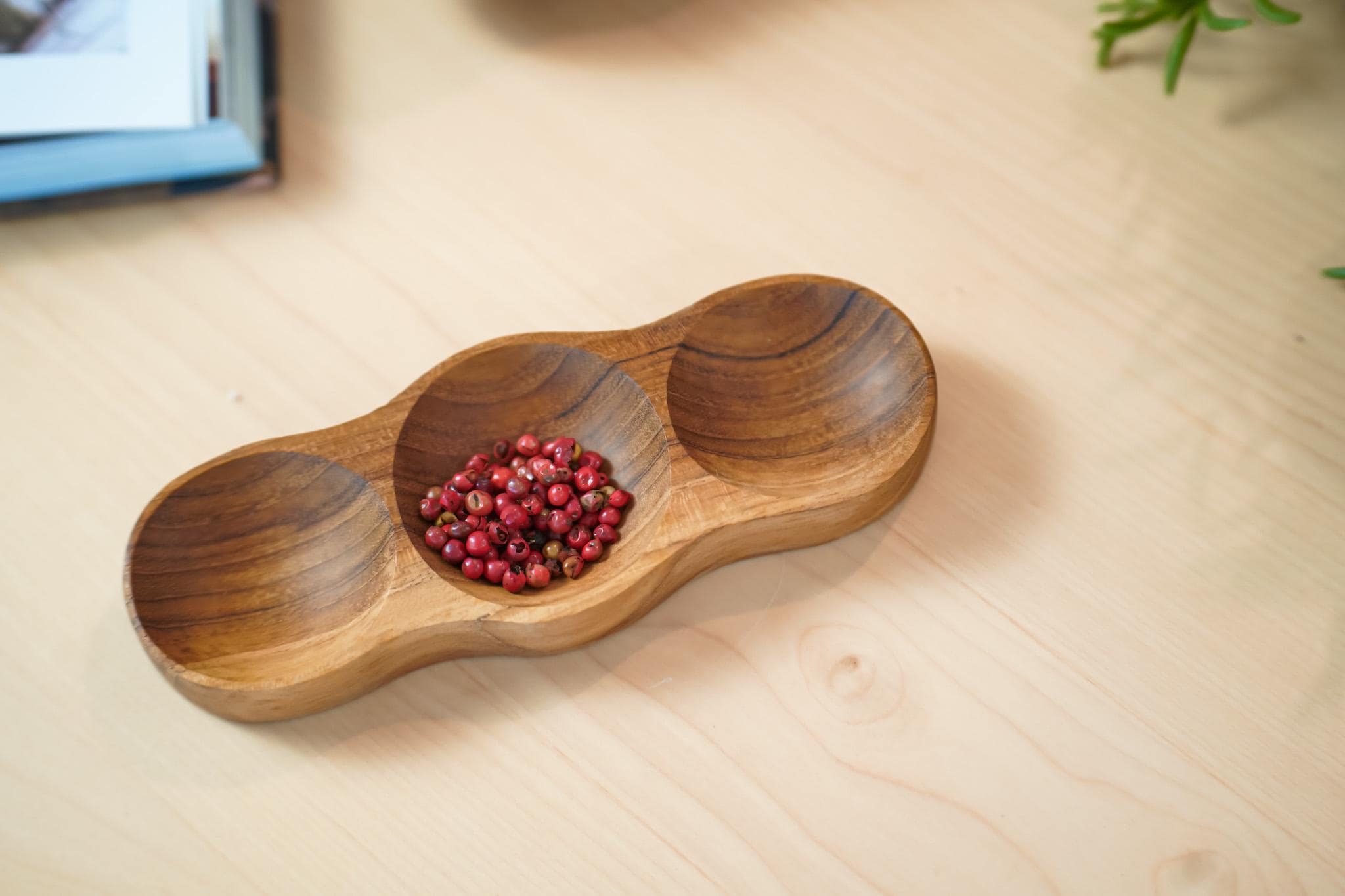 Add effortless warmth to your table with this handcrafted teak wood triple-divided mini bowl, designed for both beauty and everyday function. Carved from solid and sustainably sourced teak wood plantation.
